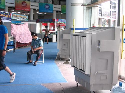 夏日高溫炎熱,大廳面積大,一般降溫設(shè)備無法滿足降溫要求,要么滿足了前期投入大,后期維護(hù)麻煩,也很耗電,客戶要求降低成本,還可以快速通風(fēng)降溫,我們推薦使用蒸發(fā)式空氣冷卻器KT-20可以完美解決這個(gè)需求。在公共大廳使用,能快速降溫、通風(fēng)、補(bǔ)充新風(fēng),增加空氣含氧量,提升舒適感,解決了傳統(tǒng)風(fēng)扇風(fēng)速高、風(fēng)壓大、舒適性差、覆蓋范圍小、耗用功率大的缺點(diǎn),不僅高效節(jié)能,且舒適宜人