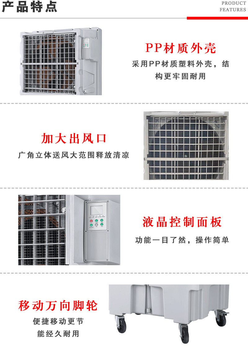 本機特點:1、大出風(fēng)口設(shè)計,90度廣角送風(fēng)